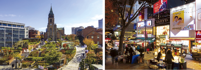 명동거리 동쪽 끝에 위치한 명동성당(좌)
