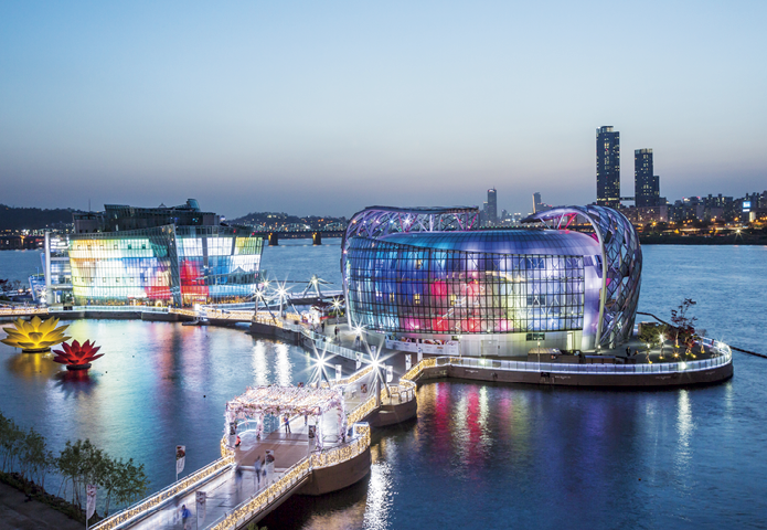 반포대교 하부의 잠수교에서는 넓게 조성된 보도를 따라 한강 수면 가까이에서 산책을 즐길 수 있으며, 인근 세빛섬은 세계 최초로 물 위에 떠 있도록 설계된 세 개의 인공섬으로 색다른 수변 문화를 경험할 수 있는 공간이다.