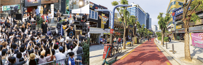 가수 이승윤 버스킹이 열렸던 홍대(좌)