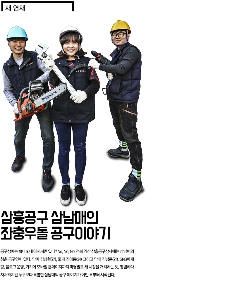 삼흥공구 인화지점의 가게문이 열리고 난 후, 나는 전산 업무를 직접 해 보면서 경리 쪽 일을 배워가고 있다. 또 틈날 때마다 우리 공구쇼핑몰도 관리한다. 아직은 완벽한 쇼핑몰이 아니지만 삼남매가 열심히 사진작업도 하고 소비자분들을 만족시키기 위해 매일같이 애쓰고 있다. 앞으로 여성 공구인들이 공구상에서 일하며 한번이라도 경험할 법한 이야기를 연재하려 한다.