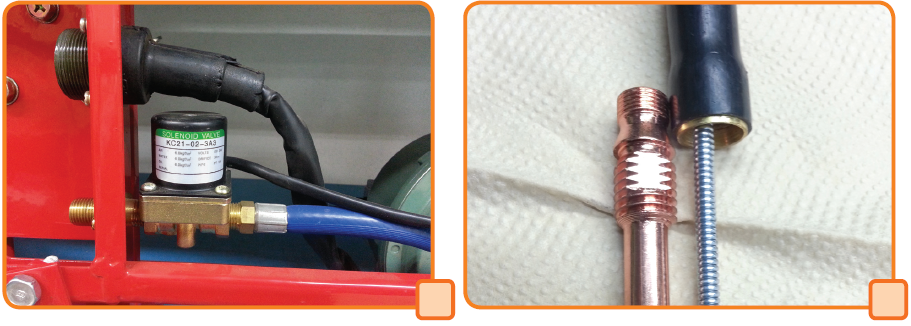A. 토치의 각종 소모품(팁, 노즐, 디피셔, 스프링)의 상태를 점검 후 교체를 바랍니다. 라이너 스프링이 너무 길 경우 와이어 송급에 영향을 미칠 수 있으므로 적정길이 만큼 절단 후 조립하시길 바랍니다.