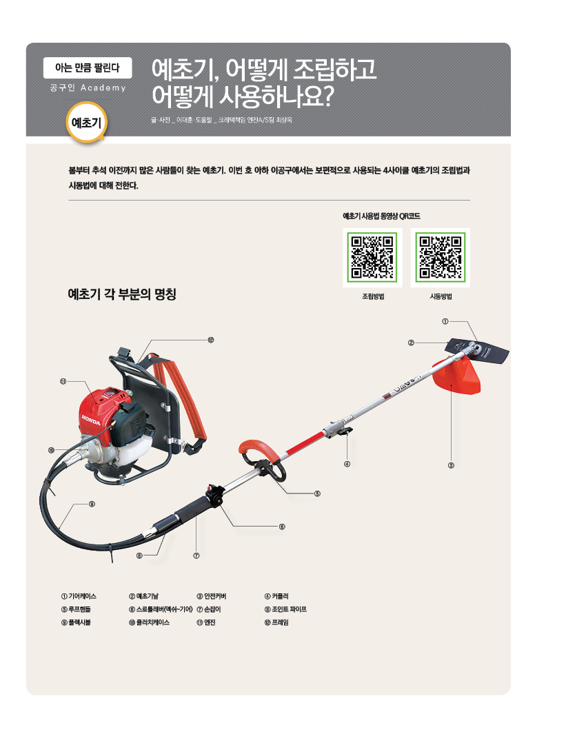 휴대용 조도측정기, 복합 면취기 사용법, 예초기 조립 및 사용법