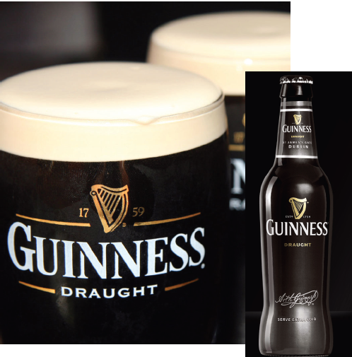 기네스 드래프트(병, 캔)에는 ‘위젯’이라는 기네스 회사의 독특한 발명품이 들어 있다. 작은 플라스틱 볼의 일종인 위젯은 기네스 병(캔)맥주의 맛을 지키기 위한 장치다. 이 장치로 기네스 특유의 부드러운 거품을 만든다. 검은색에 가까운 진한 루비 색깔의 기네스 비어는 차게 마시는 것이 좋다. 기네스 맥주는 생굴이나 어패류와 궁합이 잘 맞는다.