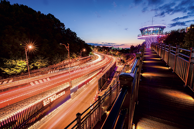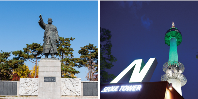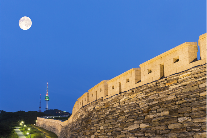 남산을 오르는 길목에 위치한 남산공원 백범광장은 아기자기한 돌담 성곽길을 따라 걷기 좋은 장소다. 성곽길을 따라 서울 도심과 남산타워를 함께 감상할 수 있어, 남산을 오르던 중 잠시 쉬어가며 달빛을 즐기기에도 안성맞춤이다. 현대의 서울모습과 역사적 건축물이 어우러진 모습에서 서울만의 감성을 만끽할 수 있다.