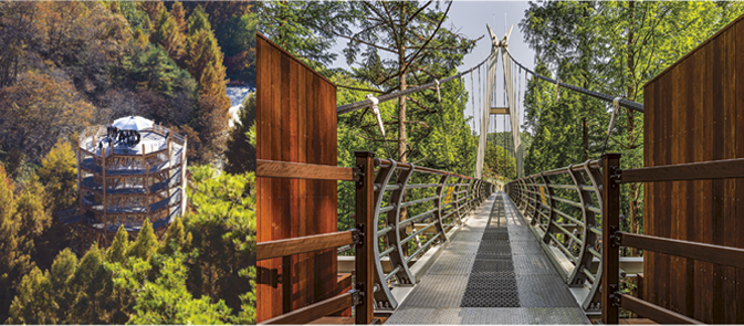 해발 약 935m의 기암괴석과 봉우리로 이뤄진 운악산 자락 깊숙한 곳에 운악산자연휴양림이 자리한다. 운악산의 뛰어난 경관은 금강산을 떠올리게 하여, 경기도의 작은 금강이라는 뜻의 ‘소금강’으로 불린다. 숲과 계곡을 함께 품은 자연 속에서 조용히 거닐며 가을의 온기를 느끼기 좋다. 인근에 위치한 2024년 9월에 개통된 한탄강 Y자 출렁다리는 국내 최장 410m로 한탄강의 아름다운 경관을 살리기 위해 중간 지지탑이 없는 무주탑 형태로 시공되었다. 이 다리는 비둘기낭 폭포와 한탄강 생태 경관 단지를 연결하고 있어 자연휴양림 방문하여 함께 즐기기에 제격이다.