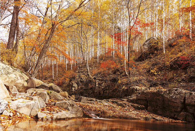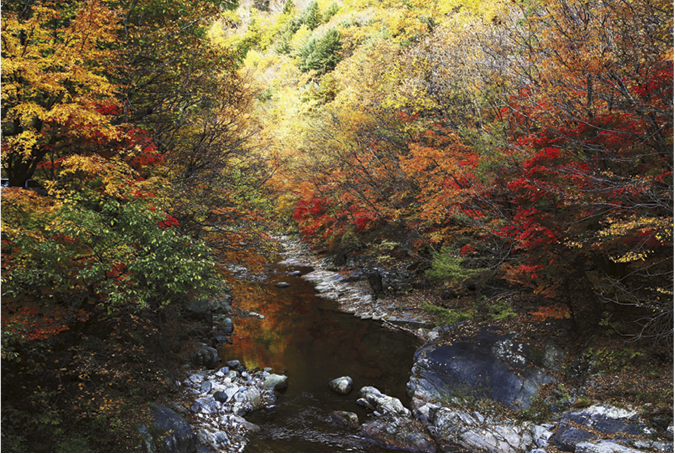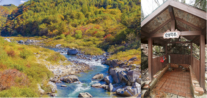오대산국립공원 북서쪽에 자리한 국립 홍천 삼봉자연휴양림은 세 개의 봉우리로 둘러싸인 지형 덕분에 사계절 내내 아름답지만, 특히 가을이면 숲 전체가 붉고 노랗게 물들어 단풍 명소로 손꼽힌다. 울창한 나무 사이로 난 산책로를 따라 걷다보면 숲과 계곡이 어우러진 풍경을 마주할 수 있는데 천연기념물 제74호인 열목어가 서식할 만큼 물이 맑은 계곡은 단풍과 어우러져 한 폭의 그림 같은 장관을 이룬다.