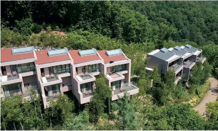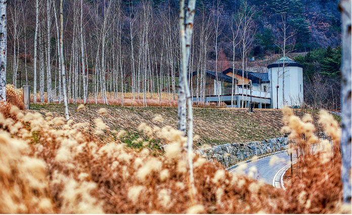 ‘자연 속에서 즐기는 웰 에이징’ 체험공간. 미세먼지 없는 숲 속 공간에서 스파와 찜질방 등을 즐기며 마음의 여유를 되찾을 수 있다. 건강한 식단, 체계적인 운동, 숲길 트레킹 등을 통해 몸과 마음의 리듬을 회복할 수 있는 장소다. 숲속동에서는 한밤의 별빛 감상도 가능.