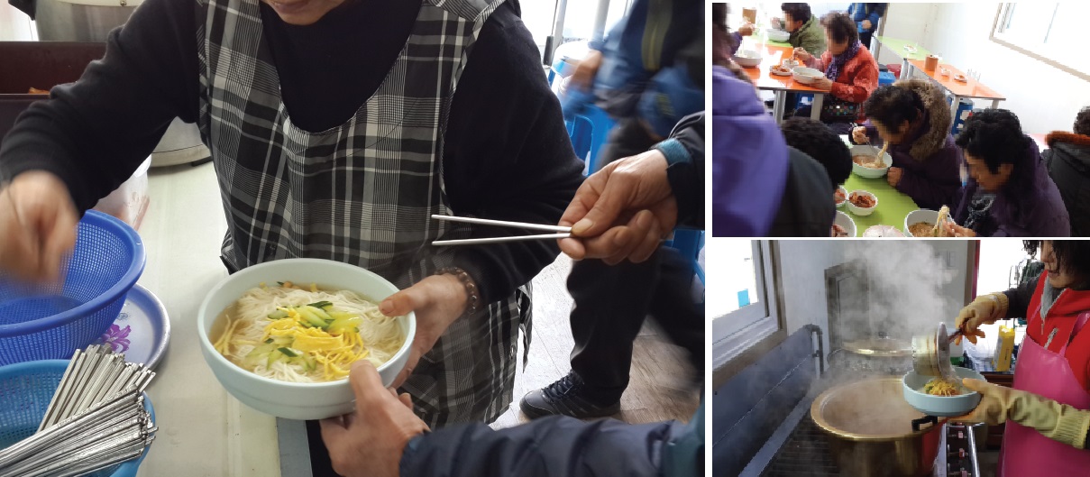 조미료 쓰지 않은 김치는 알맞게 익어 식감을 더한다. 12시 전부터 하나 둘 모여들기 시작한 주민들은 국수 한 그릇에 웃음 한 사발을 덤을 얻고 자리에 앉는다. 단출한 한끼 식사지만 운영자들의 정성이 들어가 맛이 일품이다.
