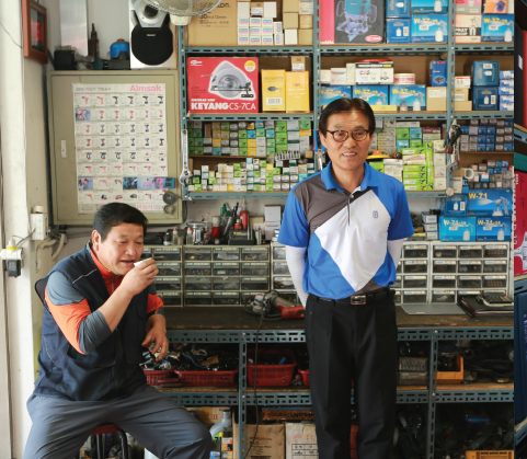 “몇 년간 열심히 장사를 하면서 사업이 차츰 차츰 나아지더라고요. 영업도 많아지고 또 직원들도 몇 명씩 있었고요. 그런데 IMF가 오니 어음 때문에 정말 힘들었어요. 그때는 물건 값을 치르는 것은 전부 어음으로 했거든요. 그래서 그 일 이후로 어음을 없앴습니다. 아주 신뢰관계만 있는 업체하고만 현금으로 거래를 하죠. 엄청난 손해를 보았는데 또 어음을 받을 수는 없잖아요. 그때 너무 힘들어서 접어야 하나 생각을 했어요. 그런데 생각보니 내가 공구상 접으면 할 것이 없으니까. 다시 한번 해보자했죠. 그러니 다시금 조금씩 조금씩 커지더라고요. 그것이 좋더라고요. 납품에 그렇게 욕심을 버리지 않고 소매와 AS로 최선을 다하니 오히려 안정적으로 경영할 수 있었어요.”