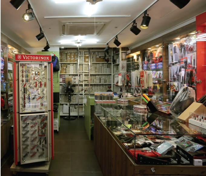 “저희 가게에서는 빅토리녹스 전 제품을 보고 확인하고 구매할 수 있어요. 인터넷에서 물건을 보고 사는 것은 그 물건이 어떤 크기인지 어떤 무게인지 알기란 힘들거든요. 빅토리녹스 다용도칼이 한 가지 종류만 있는 것이 아니라. 목적이나 쓰임에 따라 다양하게 제작이 됩니다. 단순한 기념품이 아니라 실용적으로 쓰이기 위해 제작된 칼 이예요. 낚시, 요트, 캠핑, 사냥, 구조 등 다양한 상황에 따라 제작되는 것이 맥가이버 칼입니다. 그래서 어떤 고객분은 저 멀리 지방에서 여기까지 찾아와서 칼을 구입해가곤 합니다. 작지만 강력한 자신의 목적에 맞는 다용도 칼을 구하기 위해서죠.”