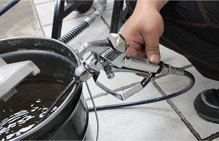 분사에 사용된 도료가 펌프 내부나 호스에 남게 되면 침전되고 굳어버려 고장의 위험이 있습니다.