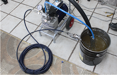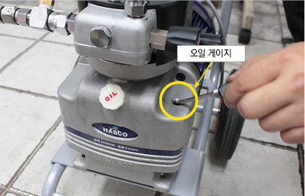 가장 빈번하게 들어오는 문의 중 하나는 도료가 흡입이 안 된다는 문의입니다. 이런 문제가 발생했을 때 가장 먼저 의심해봐야 하는 상황은 오일(유압작동유, 란도32) 부족입니다.