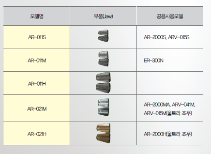 로보스터 에어리베트의 핵심 부품인 “죠우”(Jaw)의 공용으로 사용되는 기종을 알고 싶습니다.